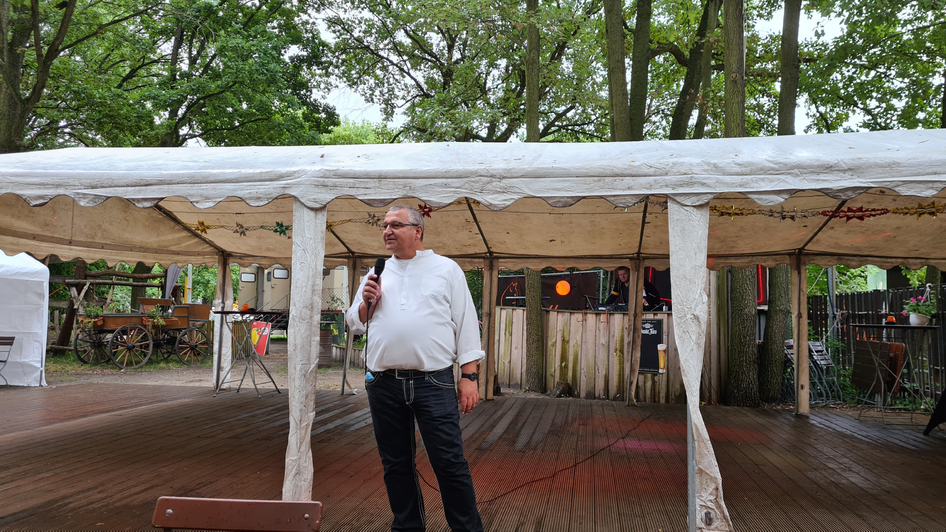 Unser Sommerfest 2021 ist Geschichte. Trotz des mäßigen Wetters ließen es sich viele Mitglieder unserer Ortsgruppe nicht nehmen, dabei zu sein. Für ausreichend Speis und Trank sorgte das aufmerksame Servicpersonal der Location " Zum Waldkater" im FEZ Wuhlheide. Es gab für jeden etwas, keiner musste hungern. Unsere Mitglieder hatten, trotz gelegentlicher Regenschauer, unter Schirmen und Überdachungen ein trockenes Plätzchen. Auch für die Jüngsten war gesorgt. So konnte der 1. Vorsitzende unserer Ortsgruppe resümieren, dass unser Sommerfest für alle, die dabei waren, eine Menge Freude bereitet hat.