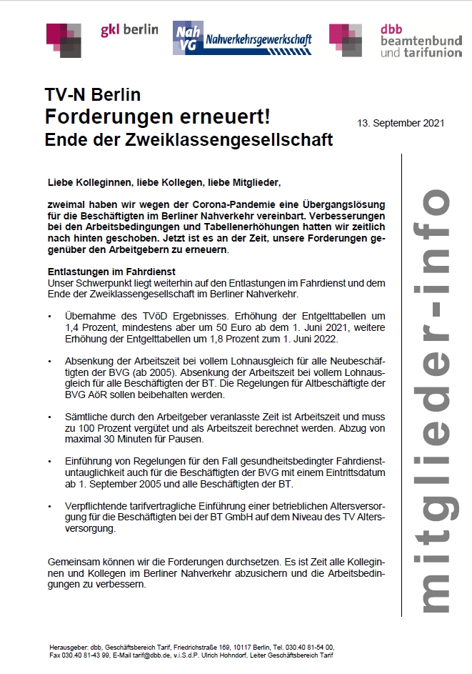 Gemeinsam mit unserem Verhandlungspartner, der dbb Tarifunion haben wir unsere Forderungen an die Arbeitgeber zuranstehenden Tarifrunde erneuert. Weiterführende Infos könnt ihr unserem aktuellen Aushang entnehmen.