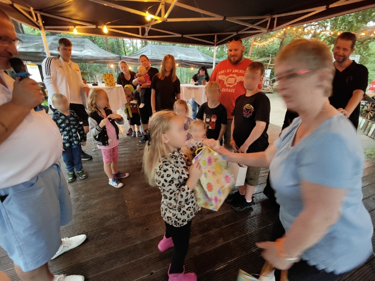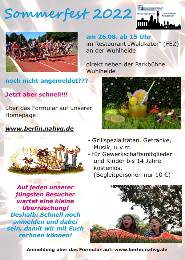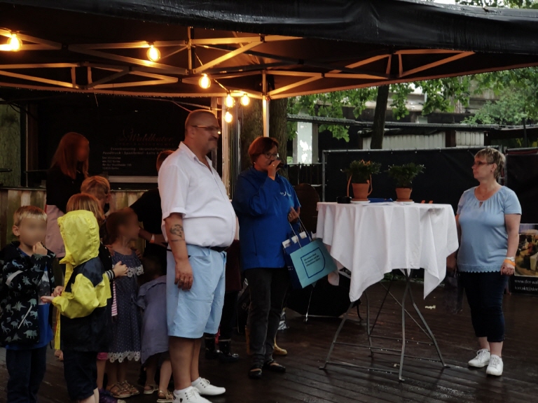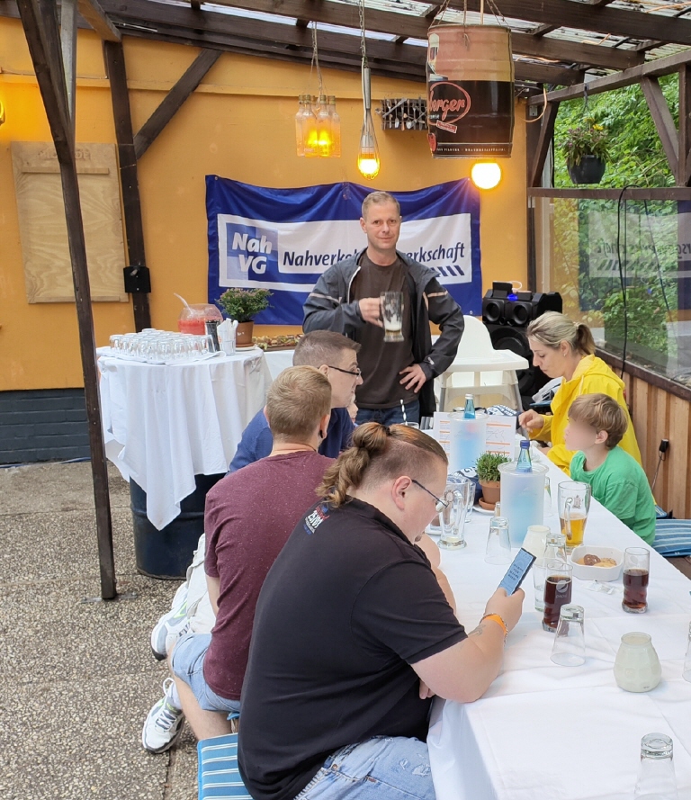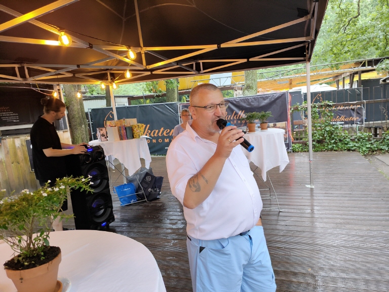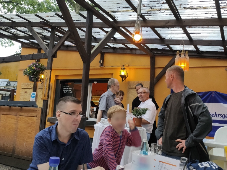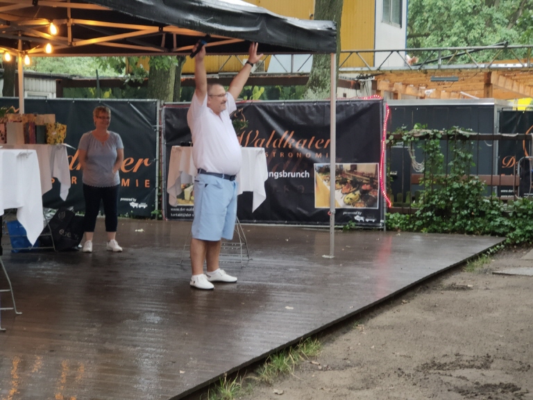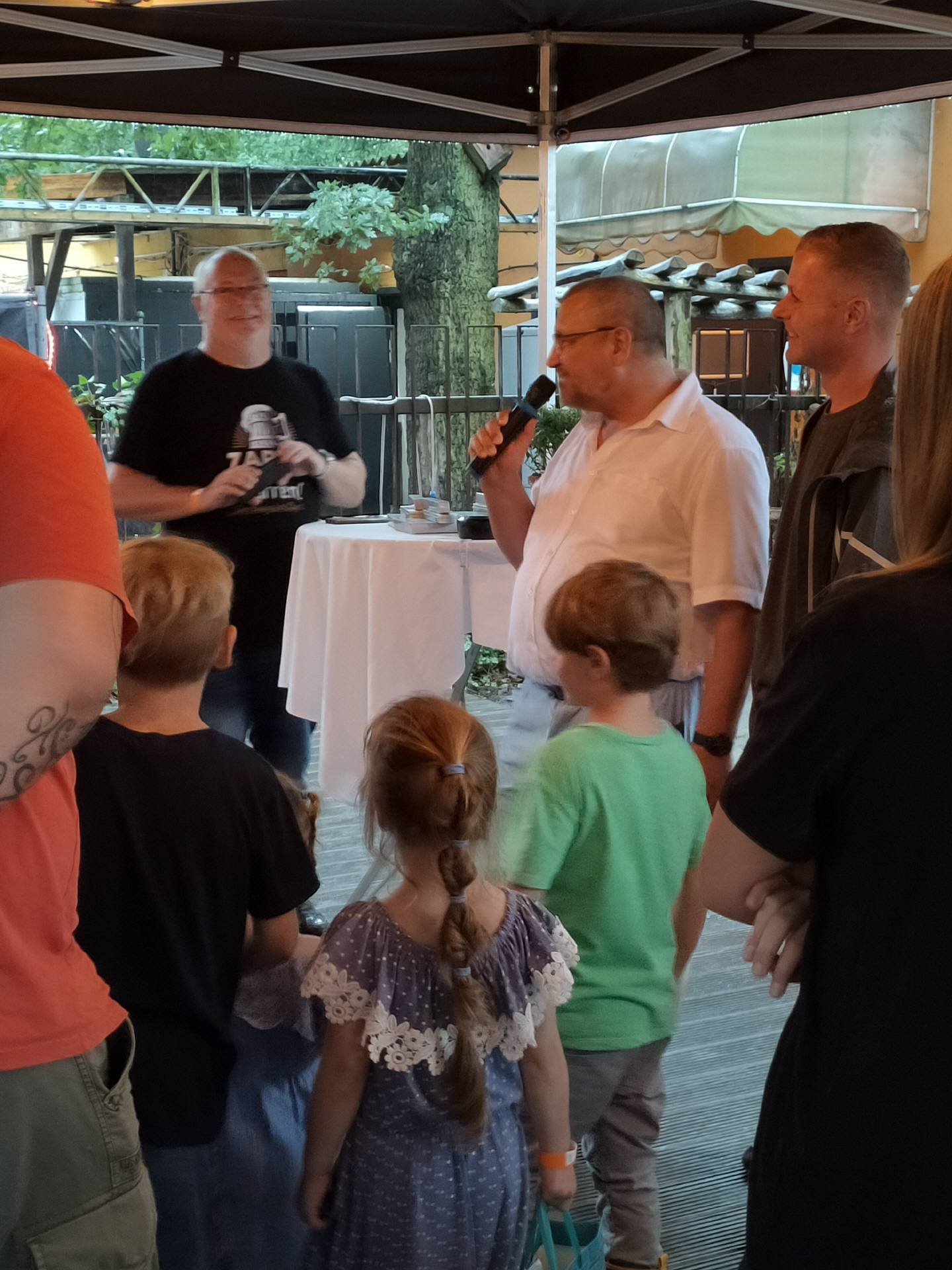 Die Ortsgruppe Berlin hat ihre Mitglieder, sowie deren Familien zum Sommerfest eingeladen. Besonders ging die Einladung an unsere Jüngsten, für die Überraschungen vorbereitet wurden. Einmal mehr ging es in die Wuhlheide zum "Waldkater" , wo uns das rührige, stets aufmerksame Serviceteam bereits erwartete. Leider hatten wir den Wettergott nicht auf unserer Seite, was jedoch der Super- Stimmung keinen Abbruch tat. Der 1. Vorsitzende der Ortsgruppe Berlin Mario Pajung begrüßte alle Gäste auf das Herzlichste. Besonders begrüßen konnten wir Gabriele Homola, die Landesdirektorin öffentlicher Dienst unseres Partners, der BB Bank. Sie wechselt demnächst in den wohlverdienten Ruhestand, dennoch ließ es sich nicht nehmen, für all unsere Jüngsten eine kleine Überraschung zu überreichen. Ebenso bedacht wurden die Kinder Seitens des Vorstandes der Ortsgruppe mit einer Überraschungstüte. Der jüngste Teilnehmer war gerade 9 Monate (!!) alt. Eine Super- Aktion, die spitze ankam! Für ausreichend Speis und Trank war auch gesorgt, für jeden war etwas dabei. Leider konnte die Hüpfburg für die Jüngsten verständlicherweise aus Sicherheitsgründen wegen des Regens nicht aufgebaut werden.