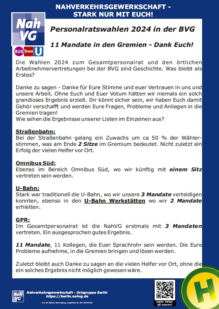 PR Wahlen bei der BVG- Die NahVG stellt sich vor