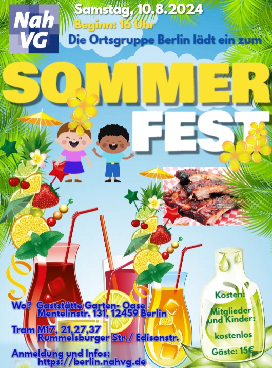 Am vergangenen Samstag lud die Ortsgruppe Berlin der NahVG zu ihrem Sommerfest. Der Einladung folgten zahlreiche Mitglieder und deren Familien. Der Vorsitzende der Ortsgruppe Mario Pajung ließ es sich nicht nehmen, die Gäste persönlich zu begrüßen. Besonders begrüßt wurde Dennis Heinrich von Swiss Life. Mit ihm wurden am Rande konstruktive Gespräche über den Ausbau einer Partnerschaft der Swiss Life und der Orstgruppe geführt.